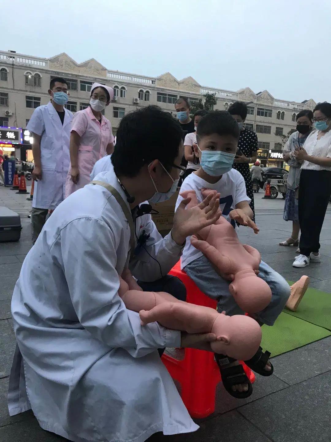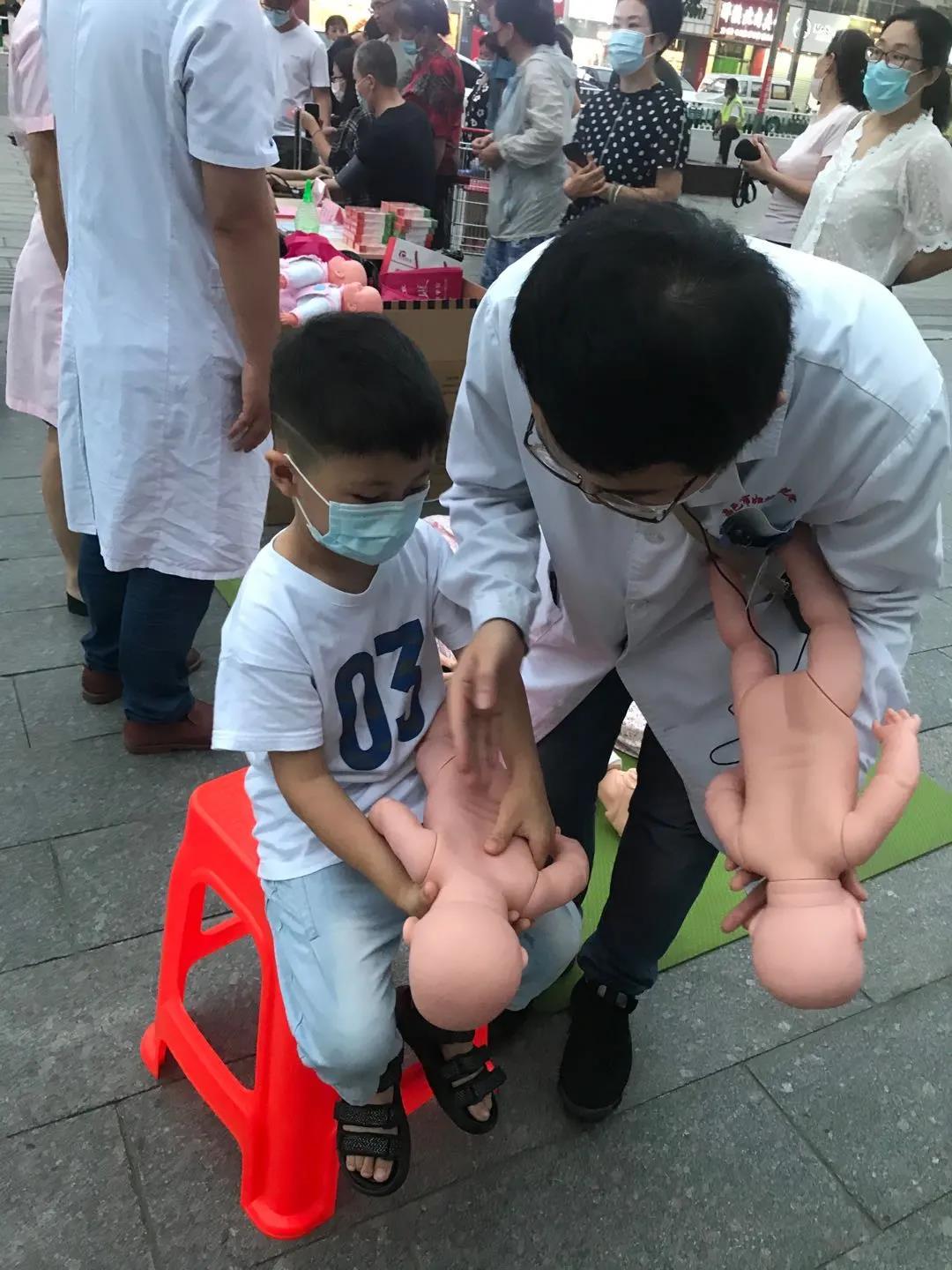 儿科志愿者,向大众普及“海姆立克”急救知识,传授急救技能,为现场群众讲解了气管异物的急救方法---海姆立克法。并手把手教会参与活动的群众急救动作要领。现场好多父母纷纷表示:“幸亏你们来了,这个海姆立克急救法我们真得好好学学!”
