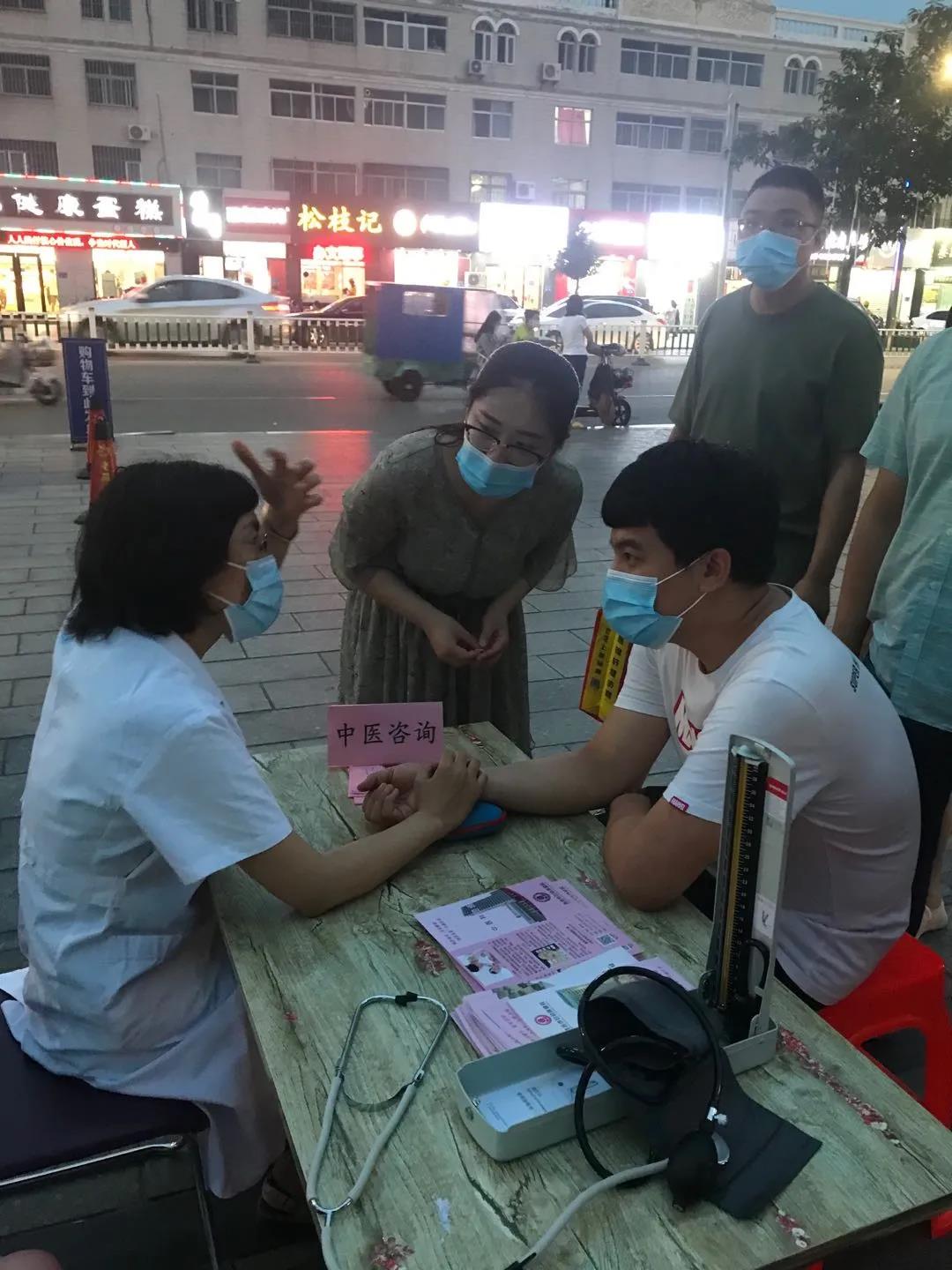 中医摊位中医科医师现场把脉人们纷纷围上前去,请中医医师把脉,中医医师根据舌苔脉象,结合各自症状一一讲解该如何进行保健治疗,并详细介绍脐疗,穴位贴敷,针灸,耳穴压豆,中药调理等中医优势适宜项目,并向现场群众讲解中医保健的重要性及优越性,科普中医保健知识。到了收摊的时间了,参与中医咨询的人们依然排着长长的队伍……