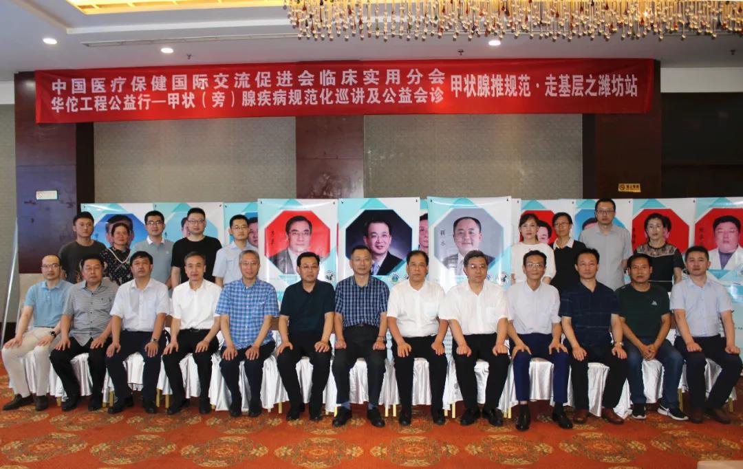 2020年8月1日上午,由中国医疗保健国际交流促进会临床实用技术分会主办,潍坊市中医院承办的华佗工程公益行-甲状腺推规范 走基层之潍坊站在潍坊鸢飞大酒店举办。本次会议由中国研究型医院学会甲状腺疾病专业委员会、中国医师协会外科医师分会甲状腺外科医师委员会协办。会议由山东大学齐鲁医院曾庆东教授担任大会主席,解放军第九六〇医院贺青卿教授和淄博市中医院李良教授担任大会共同主席,潍坊市中医院李国楼教授和昌邑市妇幼保健院菅凤国教授担任大会执行主席。