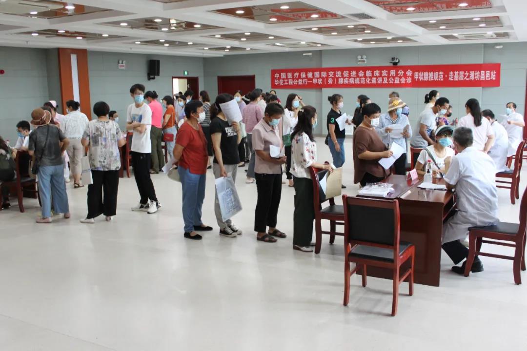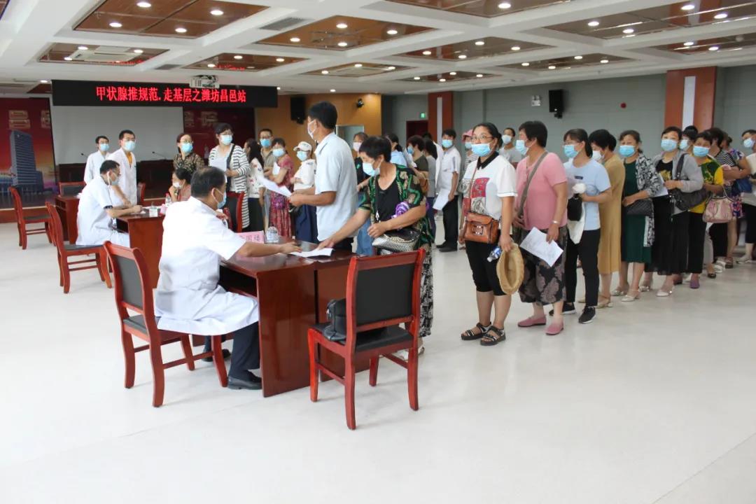 8月1日 下午,甲状腺推规范 走基层专家公益义诊活动-昌邑站在昌邑市妇幼保健院举行。此次活动由中国人民解放军总医院第一医学中心(301医院)田文教授牵头,由山东大学齐鲁医院曾庆东教授、解放军第九六〇医院贺青卿教授、山东大学齐鲁医院李鲁传教授、潍坊市中医院李国楼教授以及淄博市中心医院丁宇教授等全国知名专家教授参加,开展公益义诊活动。