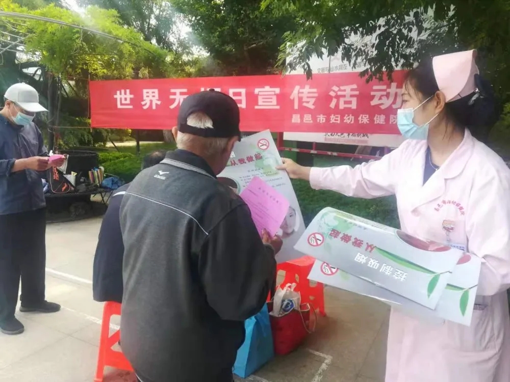 2021年5月31日是第34个世界无烟日,今年的主题是“承诺戒烟 共享无烟环境”。为贯彻落实《健康中国行动(2019-2030年)》控烟行动有关要求,有效提升人民群众烟草危害健康知识水平,按照市卫健局的统一安排,5月31日上午,昌邑市妇幼保健院组织党员志愿者到北海公园北门开展世界无烟日主题宣传义诊活动。