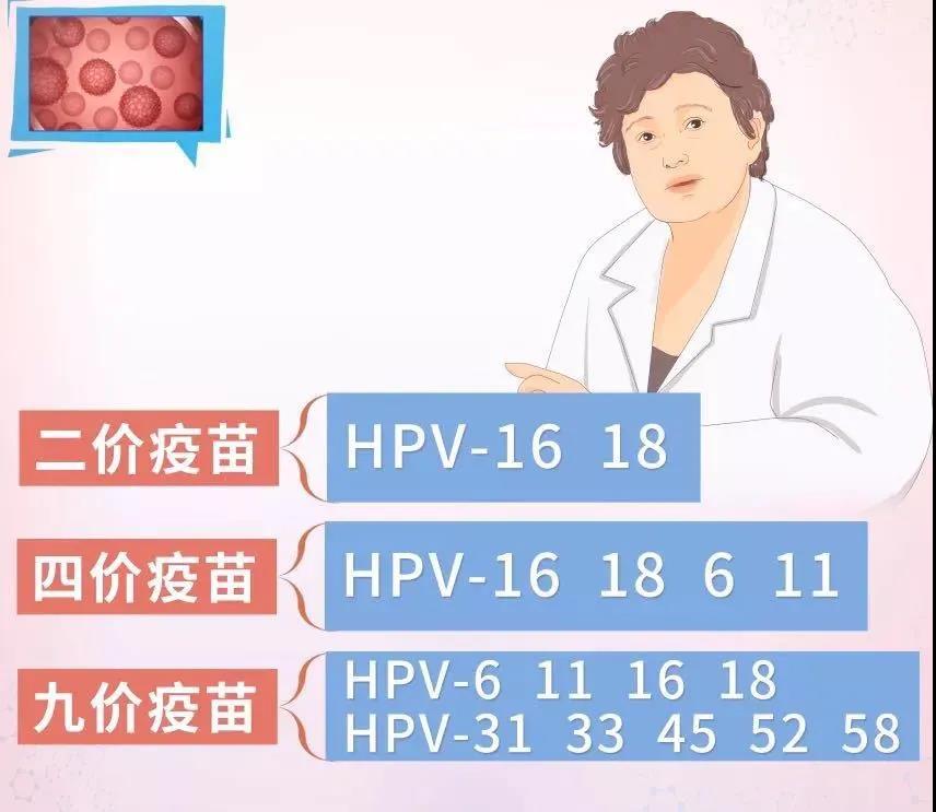 价代表疫苗可预防病毒种类,二价疫苗可以预防HPV16/18两种HPV病毒,四价可以预防HPV6/11/16/18四种HPV病毒,九价疫苗可以预防HPV6/11/16/18/31/33/45/52/58九种HPV病毒。