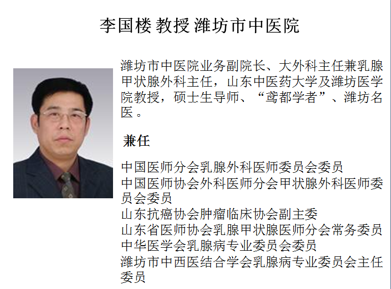 义诊期间,预约专家手术:主要由潍坊中医院李国楼教授完成手术。或者由您要求的省内,国内专家完成手术(我们会积极为您联系,并最终确定)手术范围:乳腺、甲状腺癌肿及各种微创手术。预约例数:20例。