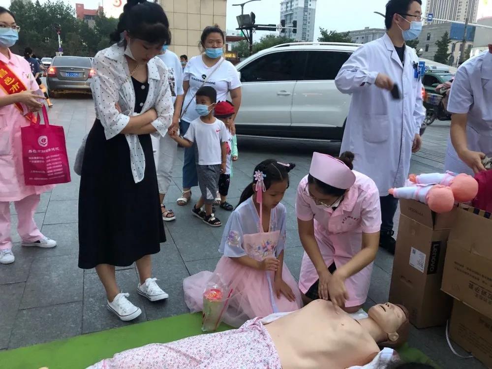 儿科志愿者,向大众普及“海姆立克”急救知识,传授急救技能,为现场群众讲解了气管异物的急救方法---海姆立克法。并手把手教会参与活动的群众急救动作要领。现场好多父母纷纷表示:“幸亏你们来了,这个海姆立克急救法我们真得好好学学!”