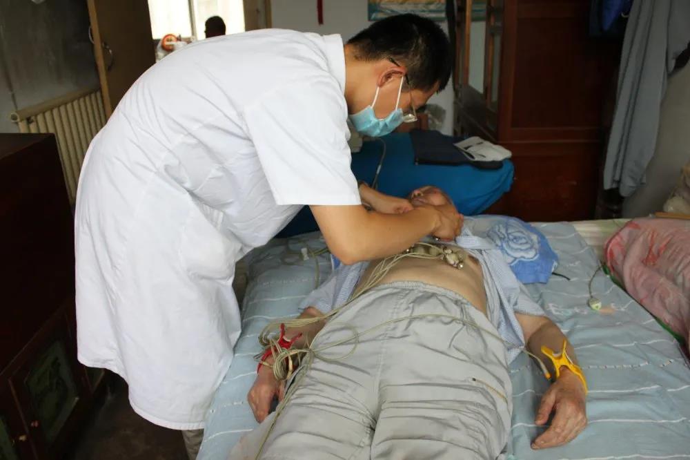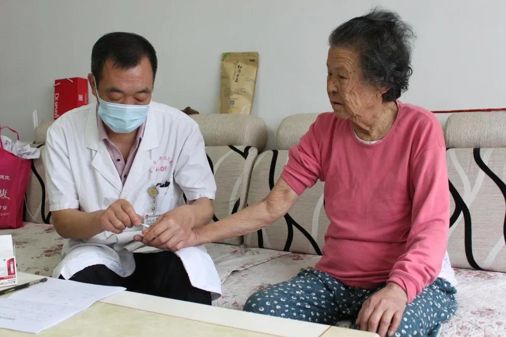 一大早,党员医务人员们就带着血压仪、心电图机、微量血糖仪,以及相关专业的查体器械等,首先来到90岁老党员栾奶奶家中,看到老人身体硬朗、精神矍铄,医务人员高兴地与她拉家常,仔细询问她的身体状况、生活起居等情况,并叮嘱她一定要保重身体。接着,医务人员为栾奶奶进行了心肺听诊和查体,测量血压、血糖,做了心电图。医务人员根据血压、心电图表现与老人仔细解释沟通并提出合理的治疗、饮食与生活建议。
