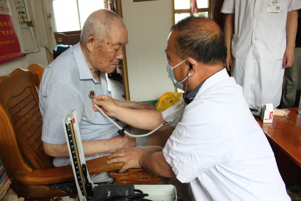 随后,医务人员又来到90岁的老党员陈大爷家中,在与陈大爷交流中得知,陈大爷平时热爱读书看报、每天必看的就是《新闻联播》节目,他表示自己在基层干了一辈子,退休后思想不能落后,仍要坚持“听党指挥跟党走”。医务人员为陈大爷进行了心肺听诊、查体、测量血压、血糖、心电图等检查,针对陈大爷的身体情况,医生为其提供用药、生活保健、夏日传染病防治等指导,希望老人们注意作息习惯,适当锻炼,提高免疫力,对抗疾病。“为我们这些老党员免费健康查体,还进行健康生活指导,心里特别感动!” 陈大爷感激地说。