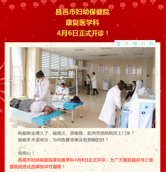 【好消息】昌邑市妇幼保健院康复医学科4月6日正式开诊!